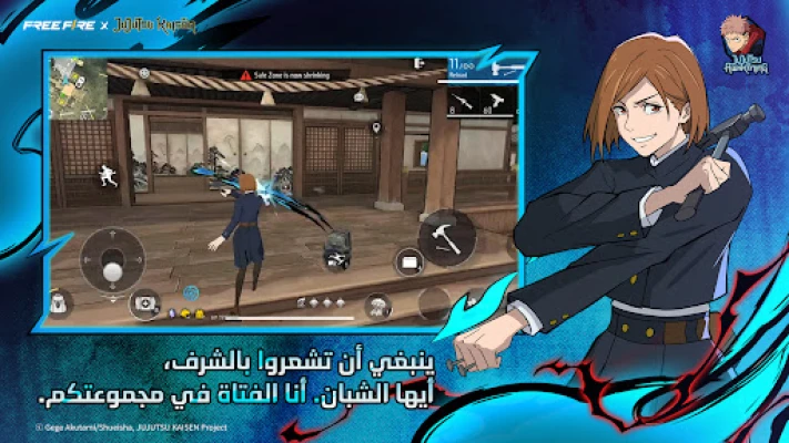 استكشف تعاون Free Fire x JUJUTSU KAISEN المثير! خض معارك جوجوتسو جديدة في مدرسة الجوجوتسو الثانوية بأسلوب فري فاير. استخدم الطاقة الملعونة والتقنيات الأيقونية مثل الضربة المتباينة والأرجواني الأجوف. قاتل كساحر جوجوتسو حقيقي واستمتع بمحتوى كروس أوفر فريد.
