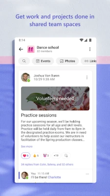 صُمم Microsoft Teams ليمنحك القدرة على إنجاز الخطط والمشاريع معًا بفعالية لا مثيل لها. تبادل الصور ومقاطع الفيديو لحظيًا، وادعم تعاونك بالوصول إلى المستندات والملفات المشتركة من أي مكان عبر التخزين السحابي. حافظ على تنظيم محتواك داخل المجتمعات المخصصة — بما في ذلك الأحداث والصور والروابط والملفات — لتوفير وقت البحث الثمين. عزز كفاءة اجتماعاتك باستخدام ميزات مشاركة الشاشة، والسبورة البيضاء التفاعلية، والغرف الفرعية الافتراضية. يمكنك أيضًا إدارة المهام بوضوح، وتحديد المواعيد النهائية، وتتبع التقدم لضمان بقاء الجميع على اطلاع دائم.