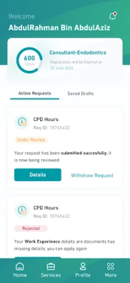 احصل على شهادة حسن السيرة والسلوك، وادخل إلى جميع شهاداتك الأخرى بلمسة زر. استعرض تفاصيل امتحاناتك المجدولة وراقب ساعات التطوير المهني المستمر. اكتشف مجموعة واسعة من الخدمات المتاحة وقدم طلباتك، مع إمكانية متابعة حالتها أولاً بأول، كل ذلك في منصة واحدة مصممة لتبسيط حياتك المهنية وتلبية احتياجاتك المتطورة.