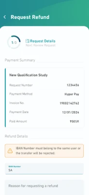 أصبحت إدارة ملفك الشخصي الشامل – بما في ذلك البيانات الشخصية، معلومات البطاقات، التعليم، والخبرات العملية – أسهل من أي وقت مضى. كما يمكنك تعديل إعدادات حسابك الأساسية وتغيير كلمة المرور أو تحديث رقم الهاتف والبريد الإلكتروني بلمسة زر. تابع جميع مدفوعاتك وقدم طلبات استرداد الأموال بيسر، مع دعم متكامل لـ Apple Pay لمستخدمي أجهزة iOS وتكامل HyperPay السلس لجميع المعاملات، مما يوفر لك خيارات دفع مرنة وآمنة.