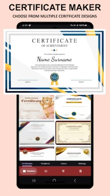 هل تحلم بتصميم شهادات فريدة تعكس الإبداع والتميز؟ مع "تطبيق تصميم الشهادة"، أصبح تحقيق ذلك أسهل من أي وقت مضى! اكتشف عالمًا من الإمكانيات اللامتناهية لتحويل أفكارك إلى شهادات تقدير، إنجاز، أو حتى لحظات مرح لا تُنسى. يتيح لك "محرر الشهادات" هذا إطلاق العنان لمخيلتك، مقدمًا لك تجربة تصميم احترافية وممتعة، لتصنع بصمتك الخاصة على كل عمل فني.
