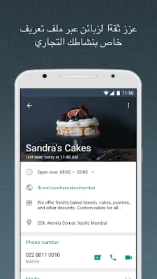 تصوّر منصة تجمع بين سهولة التواصل التي اعتدت عليها مع حلول أعمال مبتكرة. "واتساب للأعمال" هو رفيقك الرقمي لتمكين نشاطك التجاري. هذا التطبيق المصمم خصيصًا يضع بين يديك مجموعة متكاملة من الأدوات لمساعدتك على إدارة أعمالك بفعالية أكبر، بناء علاقات قوية مع عملائك، ودفع عجلة النمو نحو آفاق جديدة. إنه جسرك نحو تحويل المحادثات اليومية إلى فرص عمل مثمرة.