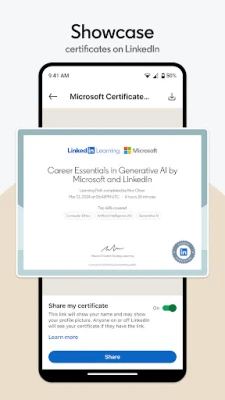 لا يقتصر دور LinkedIn Learning على تزويدك بالمعرفة فحسب، بل يمتد ليشمل منحك الاعتراف المستحق. احصل على شهادات احترافية ونقاط تعليم مستمر، وقم بإضافتها بسلاسة إلى ملفك الشخصي على LinkedIn لتعزيز مصداقيتك وتميزك في سوق العمل. ولضمان تجربة تعلم شاملة ومريحة، يدعم التطبيق مجموعة واسعة من اللغات، بما في ذلك الإنجليزية، الألمانية، الفرنسية، الإسبانية، اليابانية، الصينية، البرتغالية، وغيرها الكثير. بينما يتيح لك التطبيق استكشاف جزء من هذه المكتبة القيمة، يفتح الاشتراك عالمًا كاملاً من الإمكانيات، بما في ذلك الوصول غير المحدود إلى جميع الدورات وأدوات التواصل المتميزة من LinkedIn، مما يضمن لك التفوق بثقة في مسيرتك المهنية.