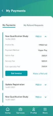 أصبحت إدارة ملفك الشخصي الشامل – بما في ذلك البيانات الشخصية، معلومات البطاقات، التعليم، والخبرات العملية – أسهل من أي وقت مضى. كما يمكنك تعديل إعدادات حسابك الأساسية وتغيير كلمة المرور أو تحديث رقم الهاتف والبريد الإلكتروني بلمسة زر. تابع جميع مدفوعاتك وقدم طلبات استرداد الأموال بيسر، مع دعم متكامل لـ Apple Pay لمستخدمي أجهزة iOS وتكامل HyperPay السلس لجميع المعاملات، مما يوفر لك خيارات دفع مرنة وآمنة.