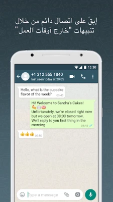 يجمع واتساب للأعمال بين كل الخصائص التي تحبها في واتساب وأدوات قوية مصممة لمساعدة نشاطك التجاري. حقق نموًا وبناء الثقة من خلال الردود السريعة، الرسائل التلقائية، وتصنيف المحادثات بكفاءة. يعمل على تسهيل عملك بذكاء ويوفر الوقت.
