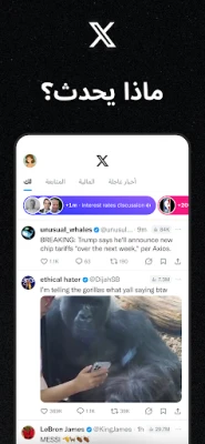 تتجاوز X مجرد النصوص لتحوّل طريقة تفاعلك. انخرط في بثوث صوتية ومرئية مباشرة ونابضة بالحياة عبر "المساحات"، حيث يمكنك مشاركة أفكارك أو الاستماع إلى نقاشات آسرة. للاستكشاف المتعمق، يمكنك رفع وتشغيل مقاطع فيديو تصل مدتها إلى ثلاث ساعات، أو الانغماس في مقالات مفصلة ومنشورات بأسلوب المدونات يبتكرها الآخرون. انضم أو أنشئ "مجتمعات" مصممة خصيصًا لكل اهتمام يمكن تخيله، من عالم الرياضة المثير إلى عوالم التكنولوجيا والفن المعقدة، معززًا الروابط مع الأفراد ذوي التفكير المماثل.